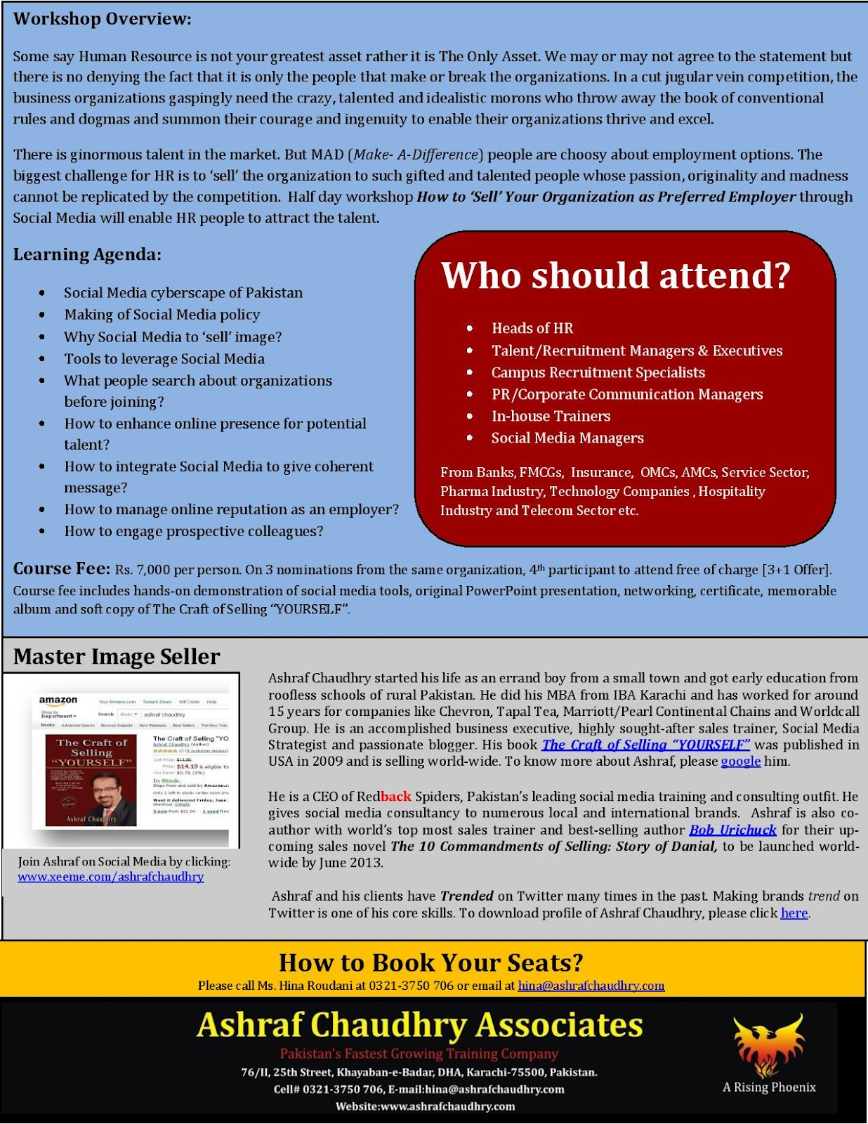 Invest just 3 hours of your time on Saturday, October 13th, 2012 2:30 pm to 5:30 pm at DHA Central Library Auditorium, Main Sunset Boulevard, Phase II, DHA, Karachi. with Dr. Imran Y. Muhammad and learn how to achieve and sustain a greater overall sense of well-being, increase your mental clarity, enhance your performance, improve your health, create more satisfying relationships and effectively reduce your stress.Being able to manage stress effectively will: